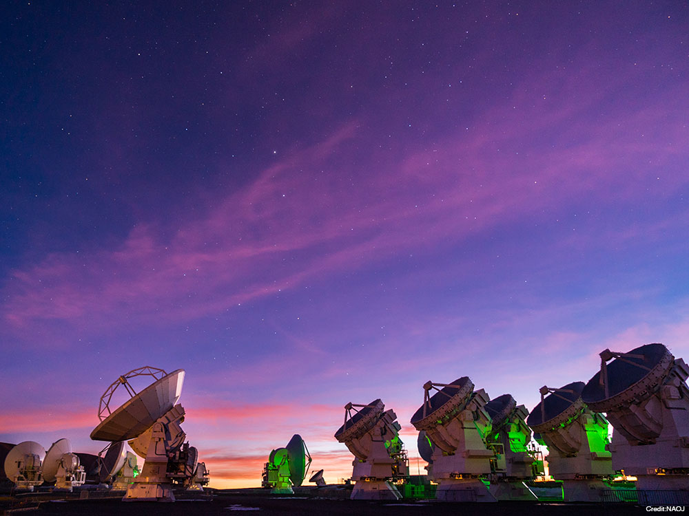 口径12メートルのパラボラアンテナ54台と口径7メートルのパラボラアンテナ12台の、合計66台を結合させることで、1つの巨大な電波望遠鏡を作りだしています。